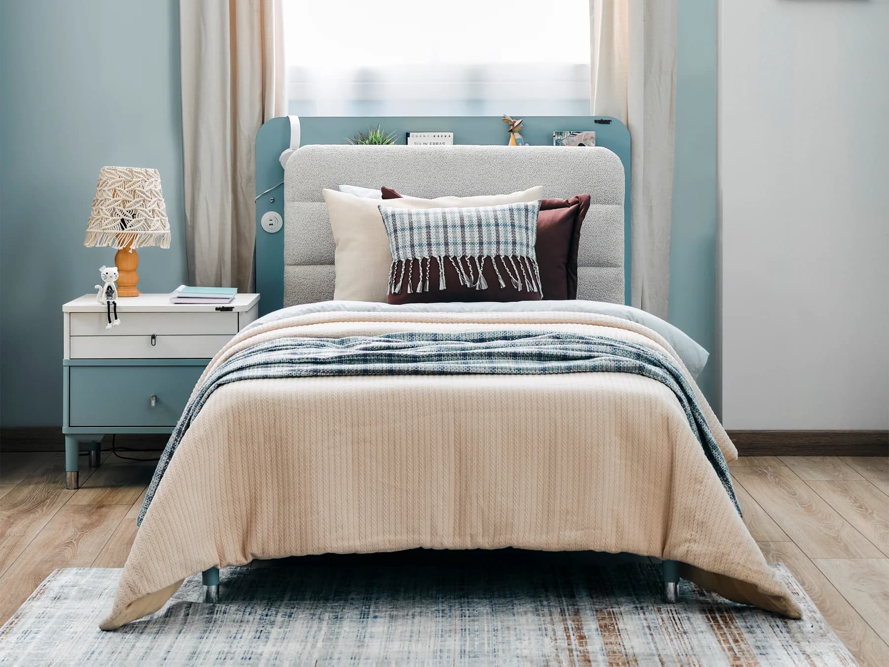 سرتخت فیروزه با رنگ آرامشبخش فیروزهای ملایم خود، یکی از زیباترین انتخابها برای اتاق خوابهای مدرن است. این سرتخت با اندازهٔ ۹۲۰×۱۲۶ طراحی شده و نقش مهمی در ظاهر نهایی و حس لمسی تخت دارد. این سرتخت با طراحی مینیمال و خطوط نرم، حس تازگی و آرامش را به فضای اتاق منتقل میکند. بخش بالایی آن به شکل یک قفسه کاربردی طراحی شده که فضای کافی برای قرار دادن کتابهای مورد علاقه، گلدانهای کوچک، هدفون یا اشیای دکوری فراهم میآورد. پارچه مخملی روشن در قسمت پایین، نه تنها ظاهری لوکس ایجاد میکند، بلکه حس نرمی و راحتی را هنگام تکیه دادن به آن به شما هدیه میدهد. آنچه سرتخت فیروزه را متمایز میکند، ترکیب هوشمندانه زیبایی و عملکرد است. قفسه بالایی به شما اجازه میدهد وسایل ضروری کنار تخت را همیشه در دسترس داشته باشید. رنگ فیروزهای آن، الهامگرفته از طبیعت، با پردههای سفید و نور طبیعی هماهنگی بینظیری ایجاد میکند و اتاق را روشنتر و دلبازتر نشان میدهد. این سرتخت برای کسانی که به دنبال دکوراسیونی شیک اما کاربردی هستند، گزینهای ایدهآل به شمار میرود.